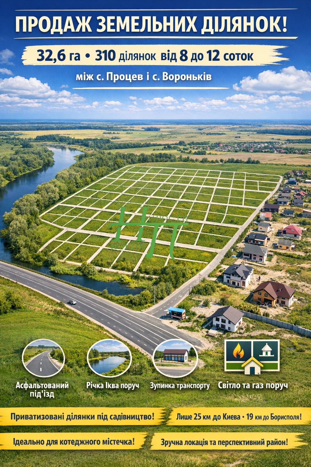 Продаж земельної ділянки загальною площею 32, 6 га (масив розбитий на 310 окремих земельних ділянок від 8 до 12 соток).